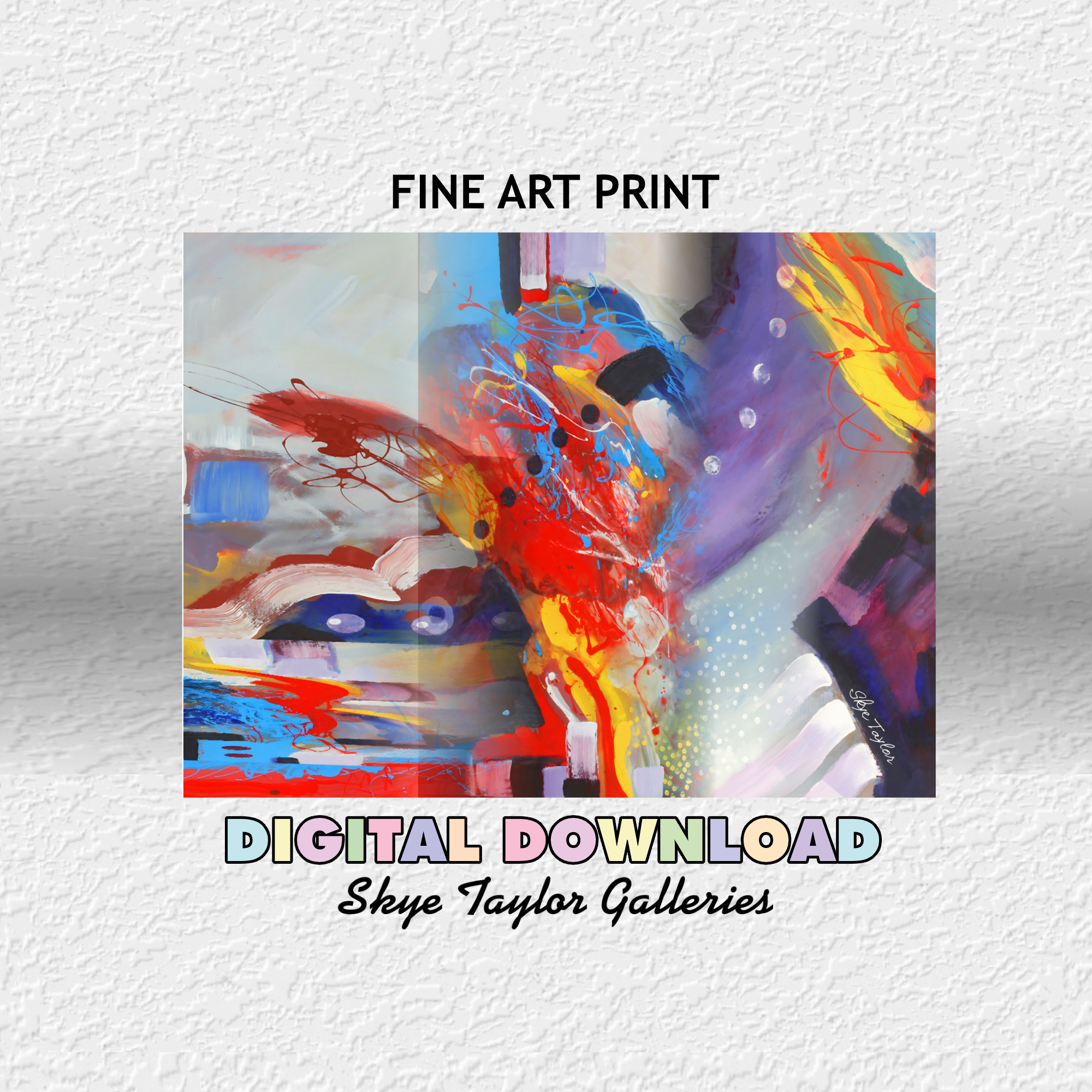 Whether you’re a collector, a designer, or just someone who connects with bold, abstract work — I’m glad you’re here. Every painting I create is rooted in decades of experience, emotion, and artistic exploration. For the first time, I'm offering Digital Print Downloads of my past work. Enjoy! Blessings, Skye