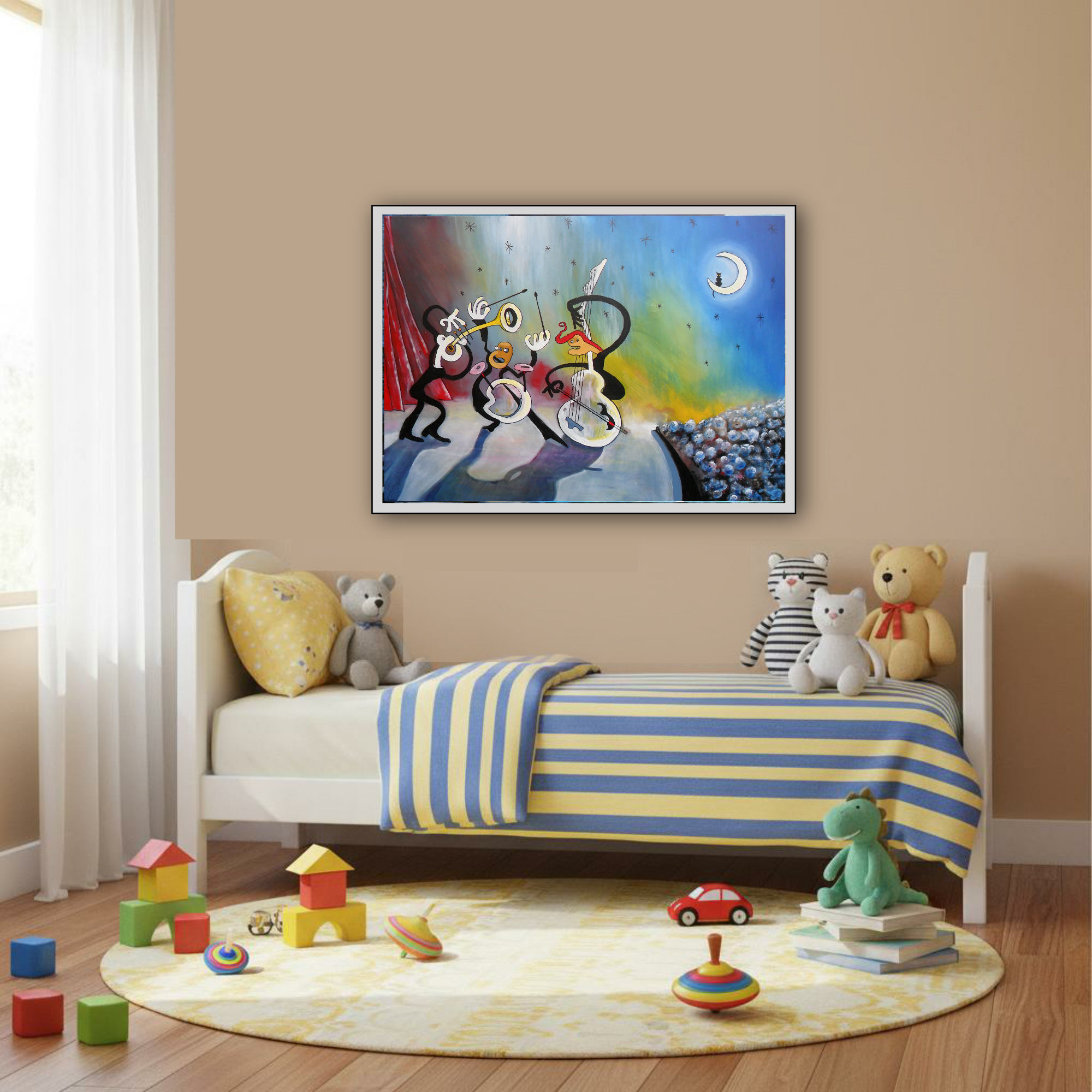 The 600 dpi file retains the detail, color, and spirit of the original hand-painted original. Experience this humorous work of art creating a timeless conversation piece that will brighten your room with smiles from all who see it.