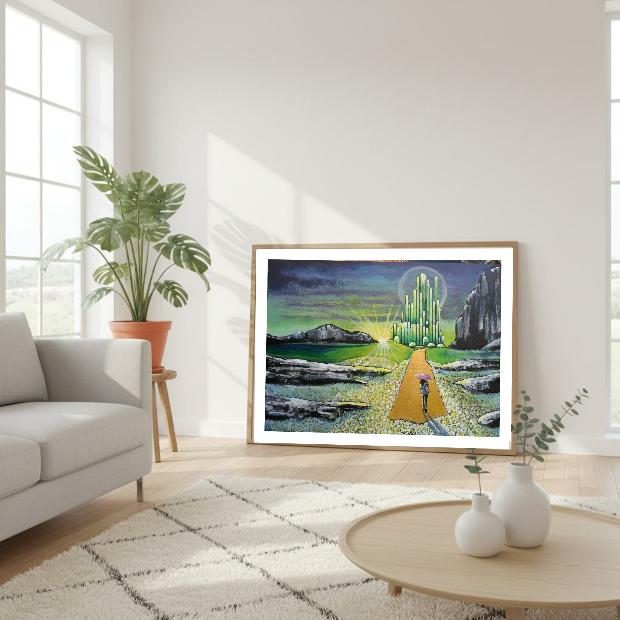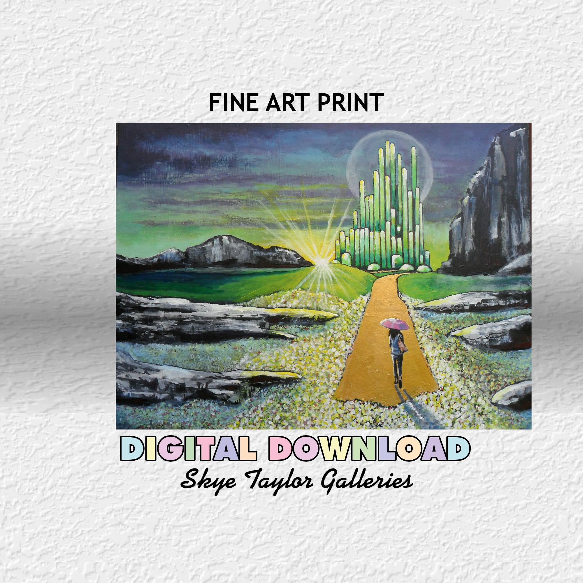 Enjoy The Journey down the golden Yellow brick road with this stunning digital edition of the "Journey to Oz" by Skye Taylor. This iconic limited edition download print is a vibrant and masterfully detailed download from the original painting valued at $2,450.
