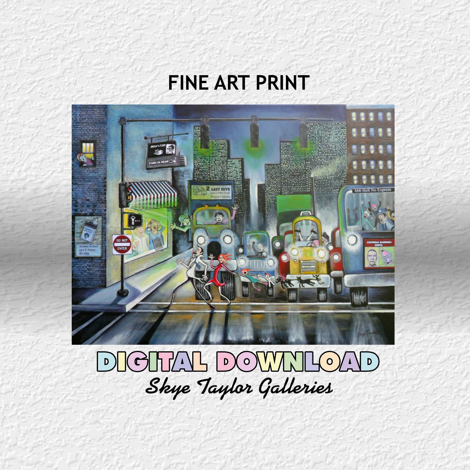 The 600 dpi file retains the detail, color, and spirit of the original hand-painted original. Experience this humorous work of art creating a timeless conversation piece that will brighten your room with smiles from all who see it.